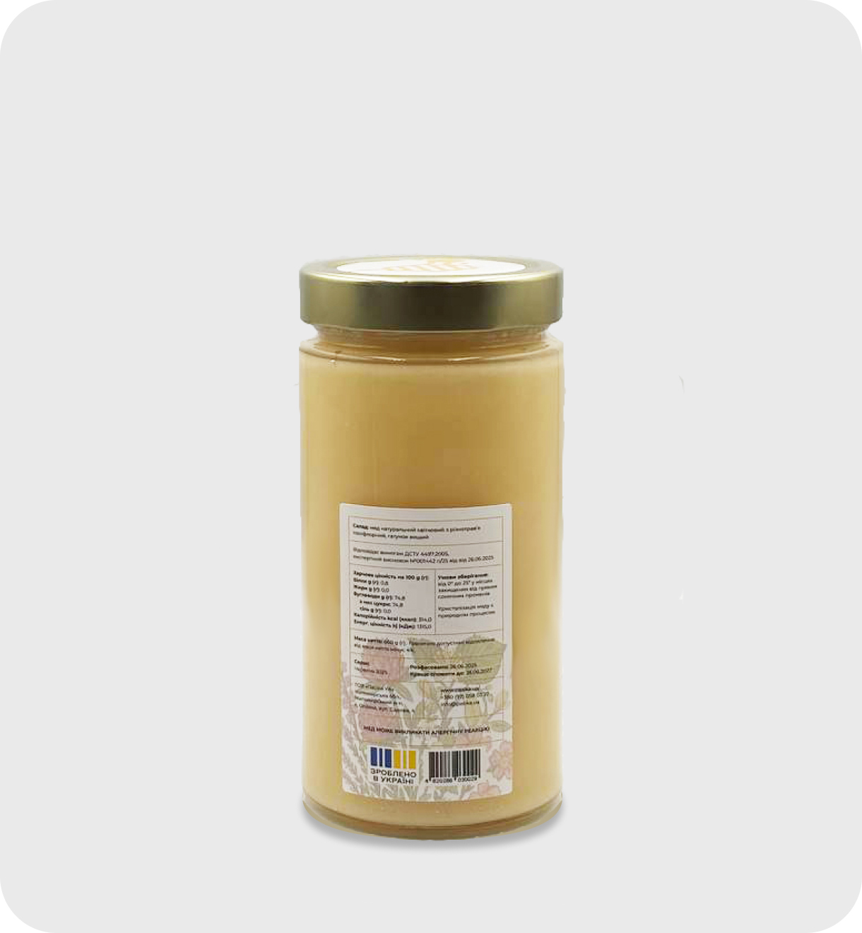 Мед натуральний, поліфлорний, зібраний з весняного різнотрав’я. Ґатунок вищий.