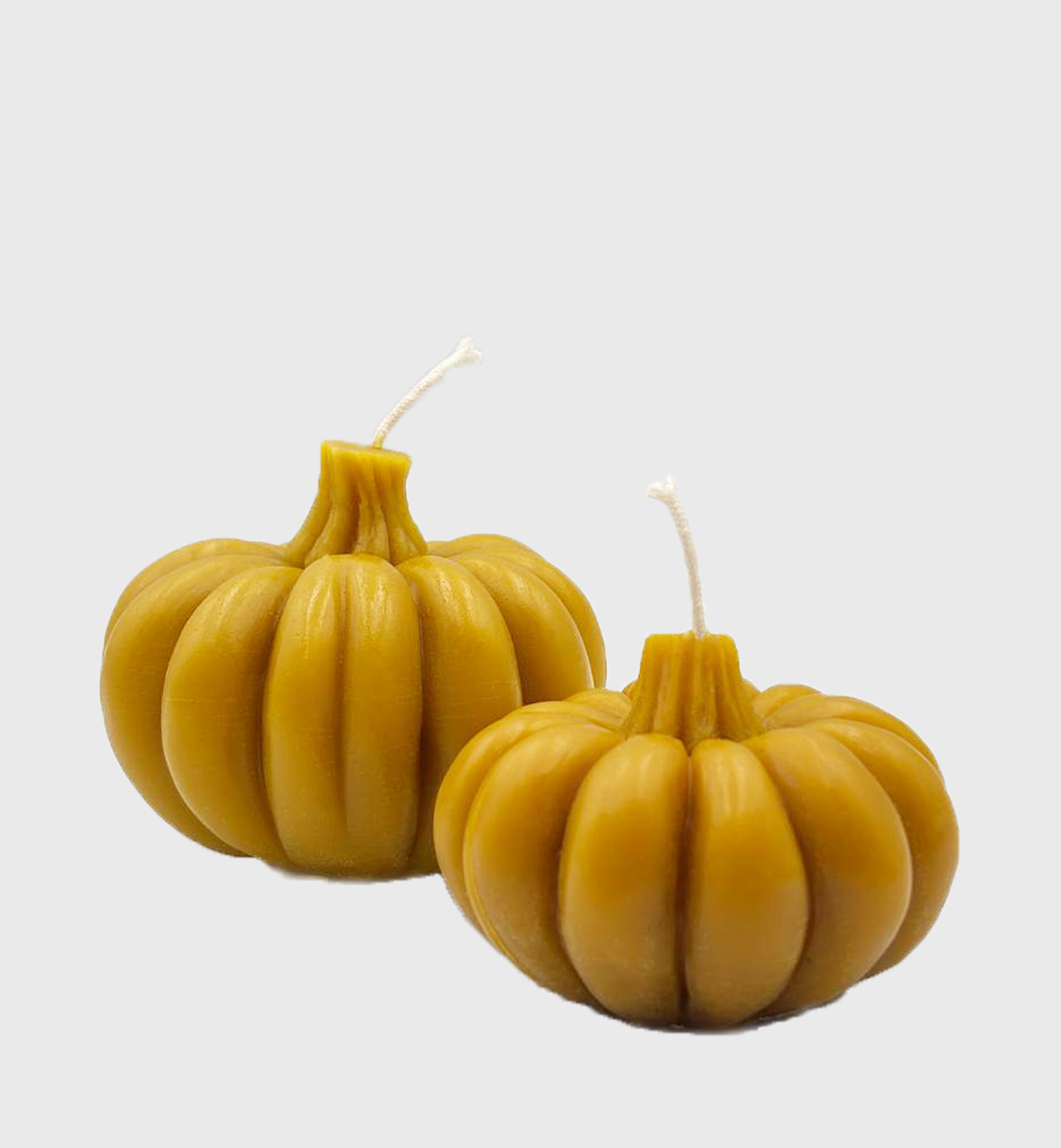 Набір із двох свічок у формі гарбузиків, доступні у жовтому та коричневому кольорах (на вибір), виготовлені вручну зі 100% натурального бджолиного воску. Розміри: 4 х 5,5 см. (менша), 6 х 7 см. (більша). Горять чисто, дарують легкий медово-квітковий аромат і наповнюють домівку затишком.