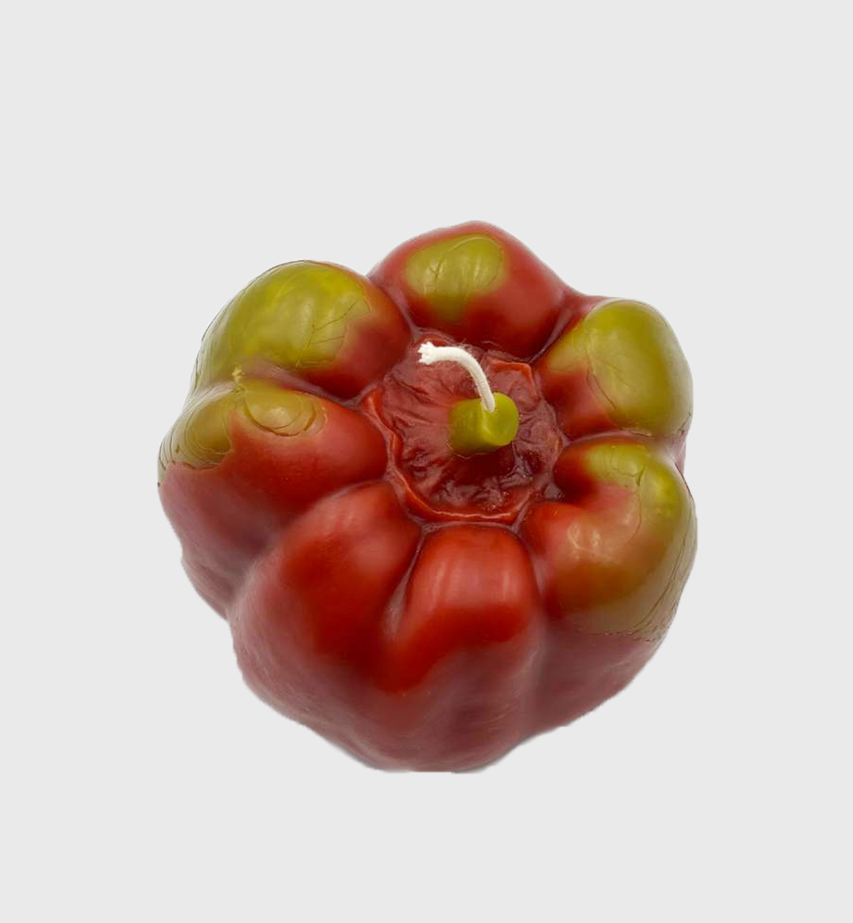 Свічка у формі солодкого перцю, виготовлена вручну зі 100% натурального бджолиного воску. Висота 6 см, діаметр 7 см. Виконана у двох кольорах, які поєднуються в оригінальну текстуру та максимально повторюють природний відтінок овоча.